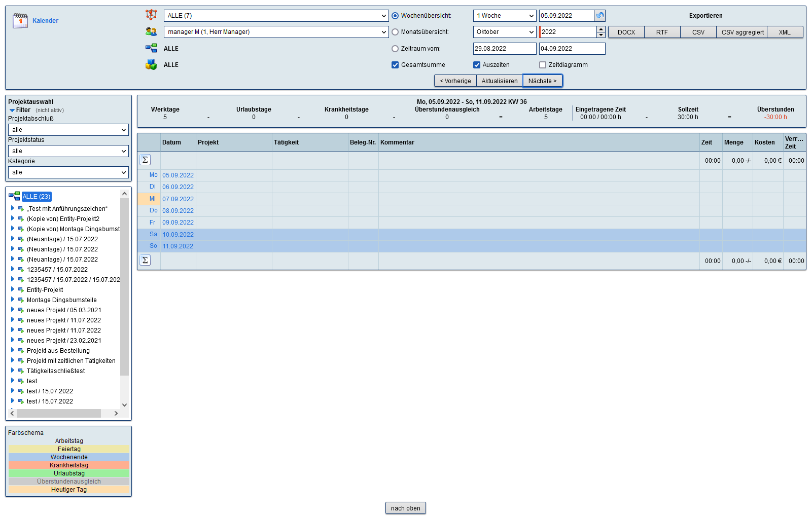 Hauptmenü (hier für Manager)