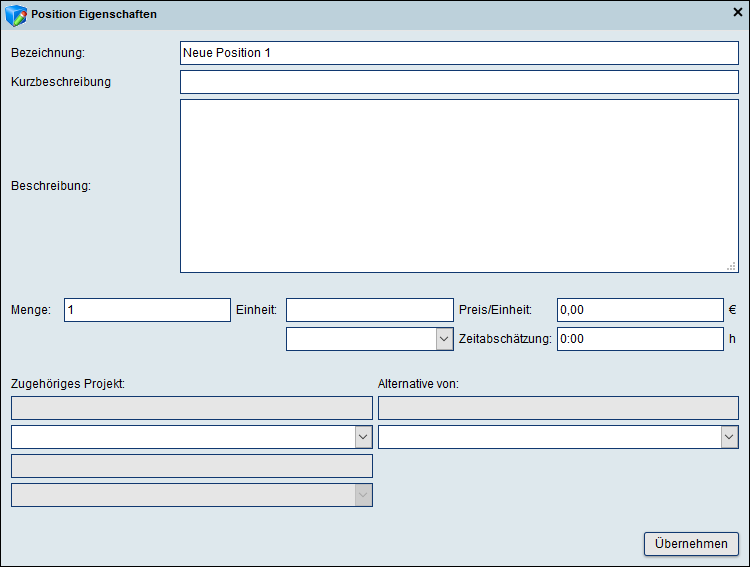 Geben Sie eine Bezeichnung für die Position ein und klicken Sie auf Anschließend schließen Sie die Angebotserstellung mit einem Klick auf