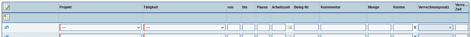 In den Auswahlfeldern Projekt und Tätigkeit, werden nur Projekte und Tätigkeiten angezeigt, für die Sie berechtigt sind.