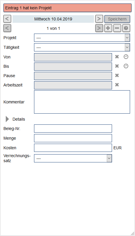 Hier können Sie Ihre Arbeitszeit eintragen.